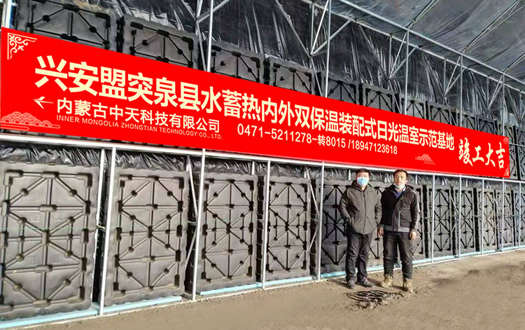 水蓄熱內(nèi)外雙保溫裝配式日光溫室是由內(nèi)蒙古農(nóng)業(yè)大學(xué)與內(nèi)蒙古中天科技有限公司聯(lián)合研發(fā)完成,并已在東北、西北、華北等地區(qū)進(jìn)行了大面積的示范推廣。該溫室集成了10多項國家專利技術(shù),實(shí)現(xiàn)了北方寒冷地區(qū)冬季不加熱正常生產(chǎn)果菜類蔬菜,對于推動設(shè)施蔬菜產(chǎn)業(yè)發(fā)展及帶動當(dāng)?shù)剞r(nóng)民增收致富有著非常重要的意義,該溫室具備以下特點(diǎn):